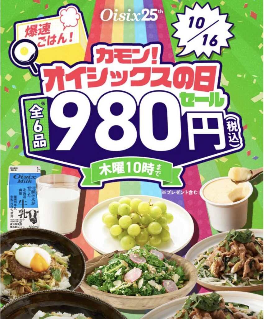 ▶︎ 10/16 カモン!オイシックスの日セール 全6品が980円(税込み)