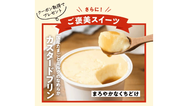 - 国産たまごを使ったカスタードプリン 1つ(※クーポン取得でプレゼント)