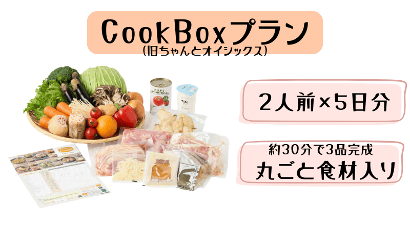 Oisix Cookbox | 約12,300円 | 2,980円 | 約76%オフ | 30分で3品作れる、2人前5日分 |